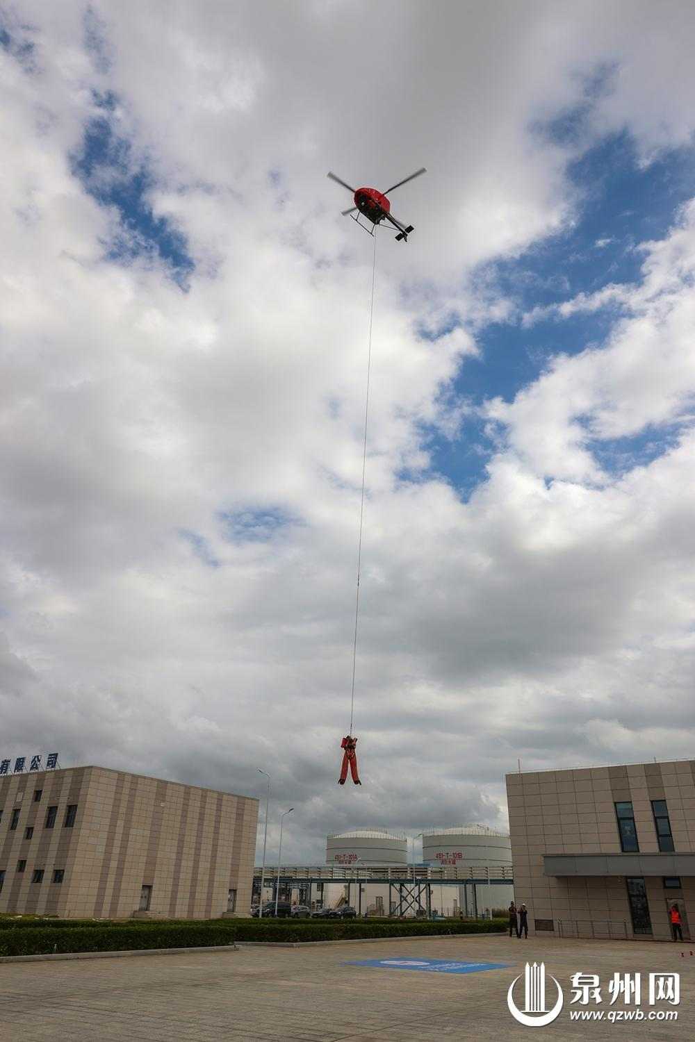 9时18分,防空袭“预先警报”响彻天空,惠安县开成职业中专学校师生、中化泉州石化有限公司职工、惠安社区居民群众迅速反应,快速、有序、安全地撤离至人防掩蔽场所。人防指挥员和医疗救护队、心理防护队的队员们,为疏散人员开展了相应的保障行动和治安防控。“空袭警报”拉响后,重要经济目标紧急防护展开。新质力量在国防动员行动和人防行动有机融合中的运用,依然是今年的演练重点和亮点。以无人机救援为例,救援人员操纵一款多功能无人机装备将“伤员”成功运送至野外救护所。该装备由高性能越野测控车、无人机运输起降平台、交叉双旋翼无人直升机组成,最大荷载能力230公斤,可抗7级风,在空中连续飞行时长可达5小时。随着“解除警报”鸣响,综合救援行动迅速启动,除了供水、电力、通信等抢修外,此次还针对化学救援开展了防化洗消、环境检测等项目演练。