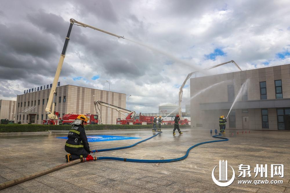 今年活动的主会场“移师”沿海,由泉州市国动办、惠安县政府主办,以“聚能新质力量 砺剑国动精兵”为主题,在中化泉州石化有限公司展开。演练按照空袭警报发放、组织人口疏散、空袭防护、应急救援等程序进行,设置抢险抢修、医疗救护、伪装设障、引偏诱爆、人口紧急疏散隐蔽等科目。700多名师生、中化员工、12支国防动员专业队伍、160多名专业队员、100余台新域新质专业设备主场接受“实战检验”。