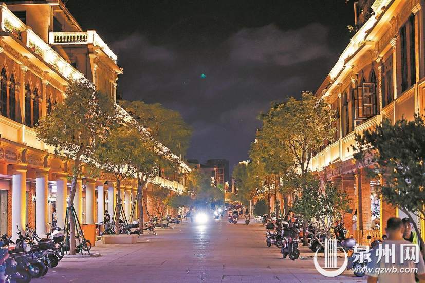 夜幕降临,中山南路骑楼两侧新装的灯光次第亮起,从涂门街一路绵延至江滨北路旱闸。柔和的光线下,“古早味”的老店招——“玉苑茶林”“泉州市百货公司”等字样清晰可辨,骑楼的外立面轮廓在灯光的勾勒下更加明显,建筑外立面上灰塑的飞禽走兽、剪瓷拼贴的四季花卉也被照亮细节,重新焕发光彩。