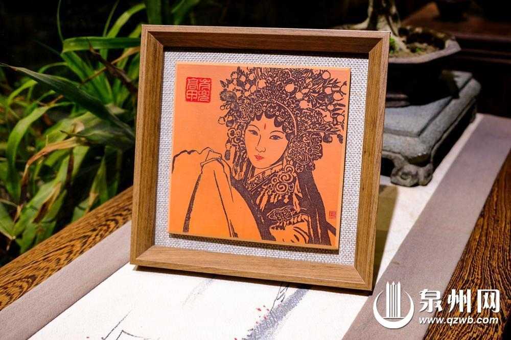 “在图案上,我们设计了花旦、武生、大花脸和丑角,最终选用了更典雅的花旦和武生。”伍建东介绍,材料的选择同样考量着价值权衡。闽南砖雕的厚度基本在15毫米左右,考虑到文创产品的便携性,需要把红砖从15毫米直接加工到8毫米。每一件作品都选用闽南地道红砖,需经历定厚、雕刻、打磨、上色、装裱等十余道工序。“我们利用现代化机械雕刻,但从红砖的选材,到加工制作、填色、打磨装裱,都以人工干预”,从而确保品质,也让非遗艺术更好地融入生活。