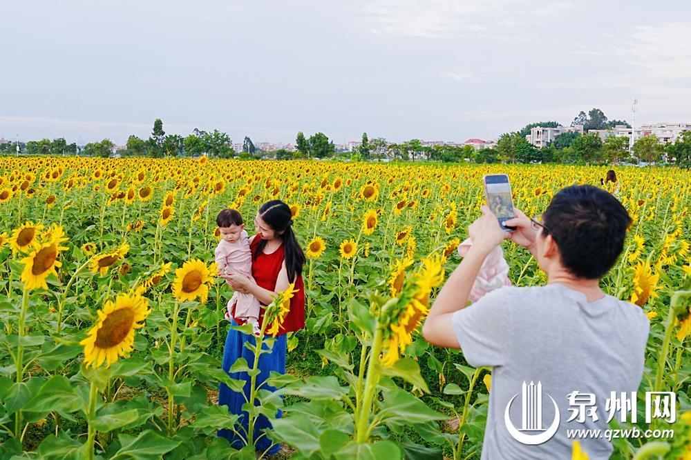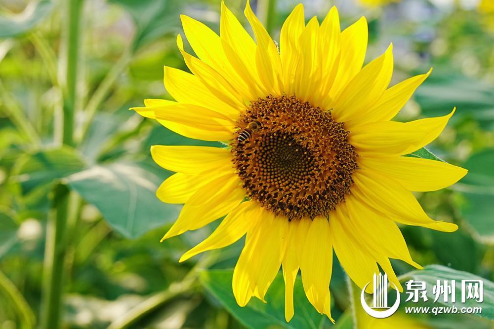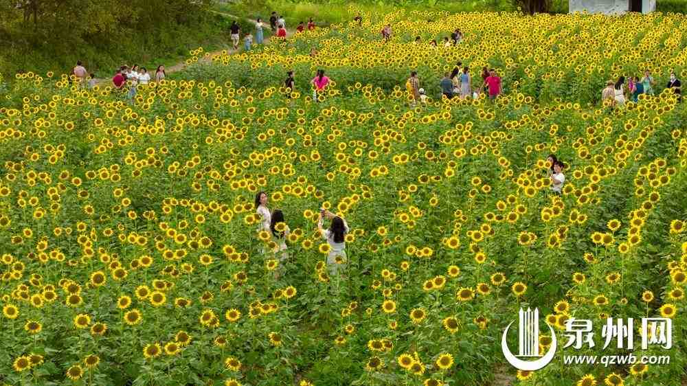 快看!就在晋江安海镇曾埭村,已经藏不住啦——秋风像个调皮的小画家,偷偷给25亩向日葵“刷”上了亮闪闪的金漆,田野里的小太阳们全都仰着圆滚滚的花盘,朝阳光使劲“笑”,明黄的花瓣跟着风轻轻晃脑袋;风一吹,金色花浪“哗啦啦”叠涌过来,瞬间变成了会动的田园油画,也太绝了吧!