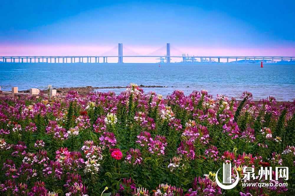 秋日,泉州中心市区丰海路滨海公园的花海在海风的吹拂下摇曳着,形成一幅色调明快的水彩画。 (陈晓东 摄)