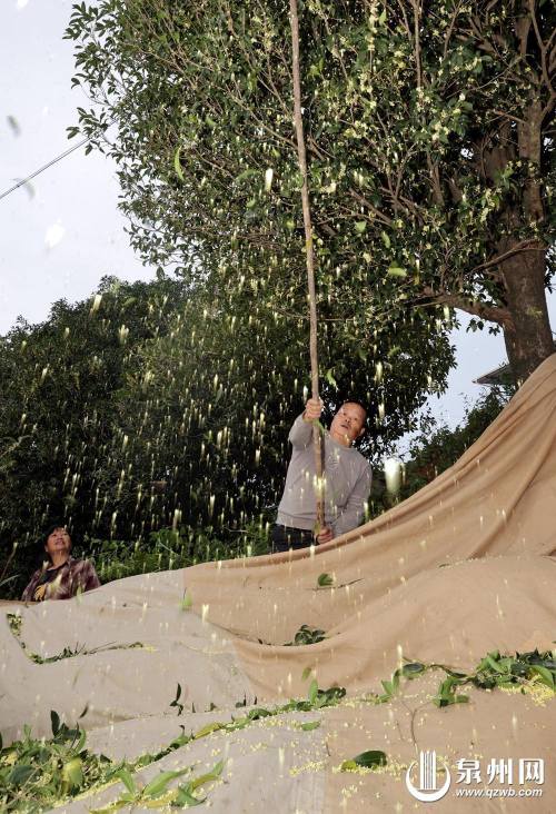 安溪县虎邱镇芳亭村,花农们正忙着打收桂花。(张九强 摄)