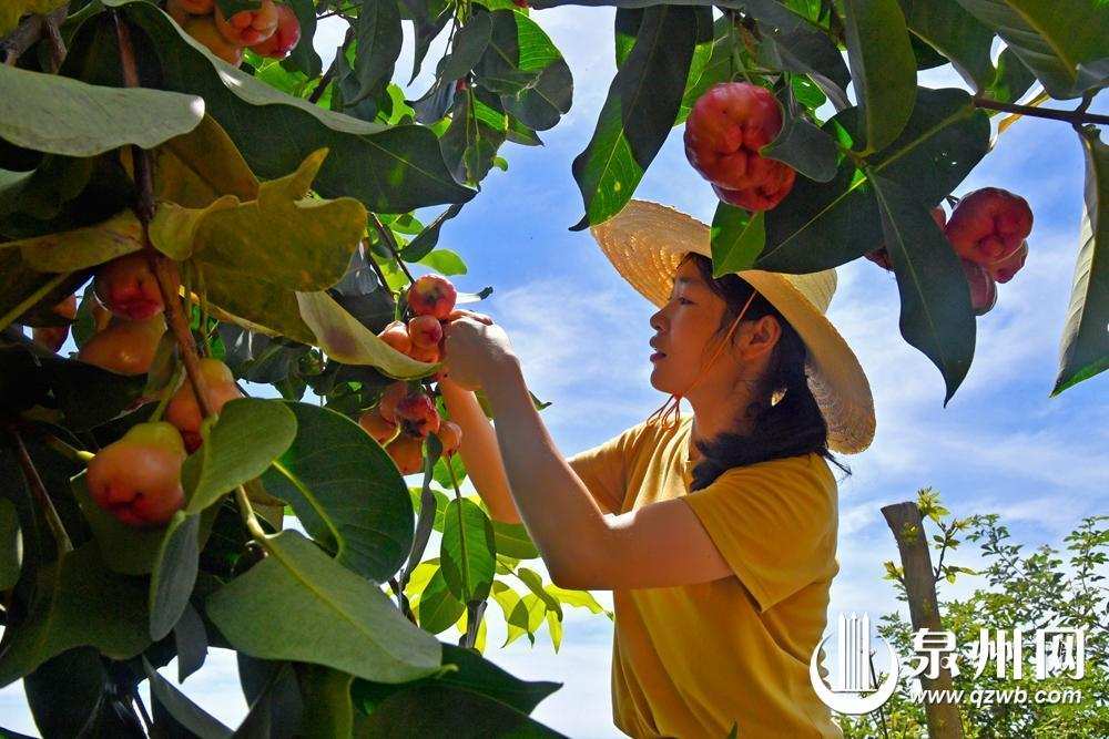 在泉港区涂岭镇的生态果园内,莲雾果树迎来采摘季。(洪坤泽 陈晓东 摄)