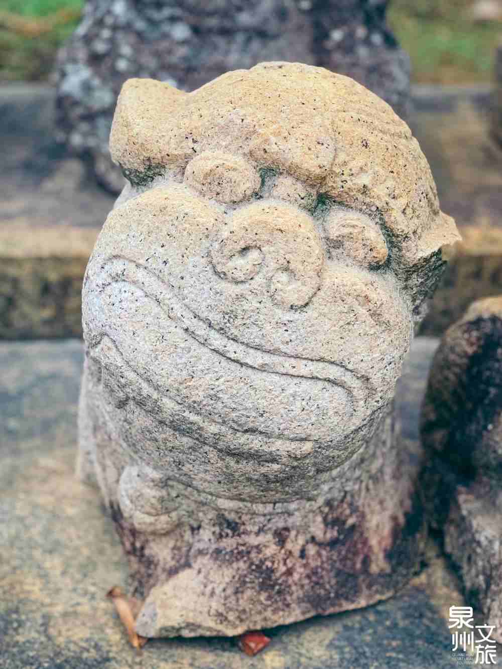 古厝或寺庙的门廊下,总能看到粗壮的石柱。天后宫的寝殿保留着一对十六角形廊柱,为元代印度教青石雕石柱,中间处可以看到圆形的印度教浮雕,时光在上面留下了岁月。泉州古厝的大门两侧,总会有一对门枕石,它们是建筑“守护者”,也是吉祥的象征。门枕石多为石雕,或为狮子,或为石鼓。低头一看,就能感受到泉州人对家的珍视与守护。在泉州的巷口、墙角,常会看到石敢当。传说它能阻挡煞气、保护一方平安。坚硬的石头被闽南人赋予灵性,它早已与周围的建筑、市井融为一体,成为泉州人生活的一部分。