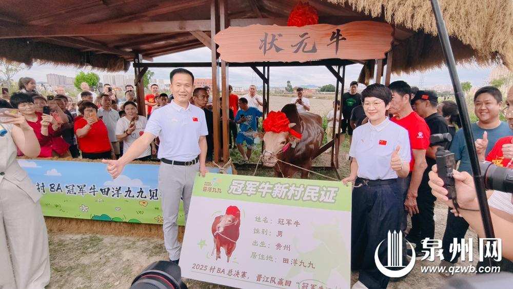 状元故里来了“冠军牛”,牛气冲天。19日,承载着赛事荣誉与体育精神的“冠军牛”安家晋江池店镇田洋九九景区,全国“村BA”的冠军荣耀在状元故里书写新篇,为乡村文旅发展注入鲜活力量。