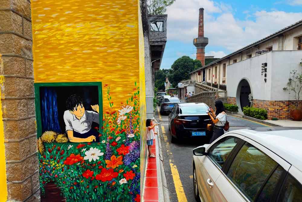 近期,在不少社交媒体上,网友们纷纷点赞泉州这座城市处处有惊喜。图为鲤城区源和1916创意产业园内,一处动漫风格的墙绘成了网红打卡点。(陈晓东 摄)