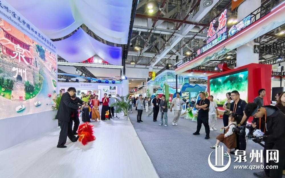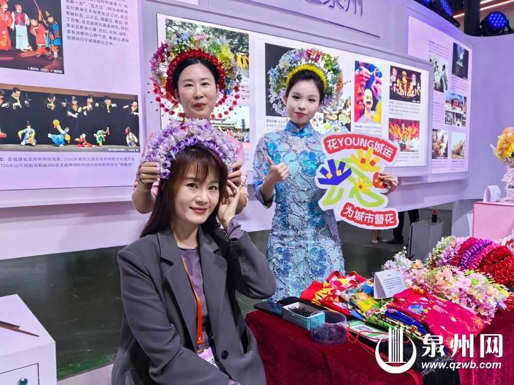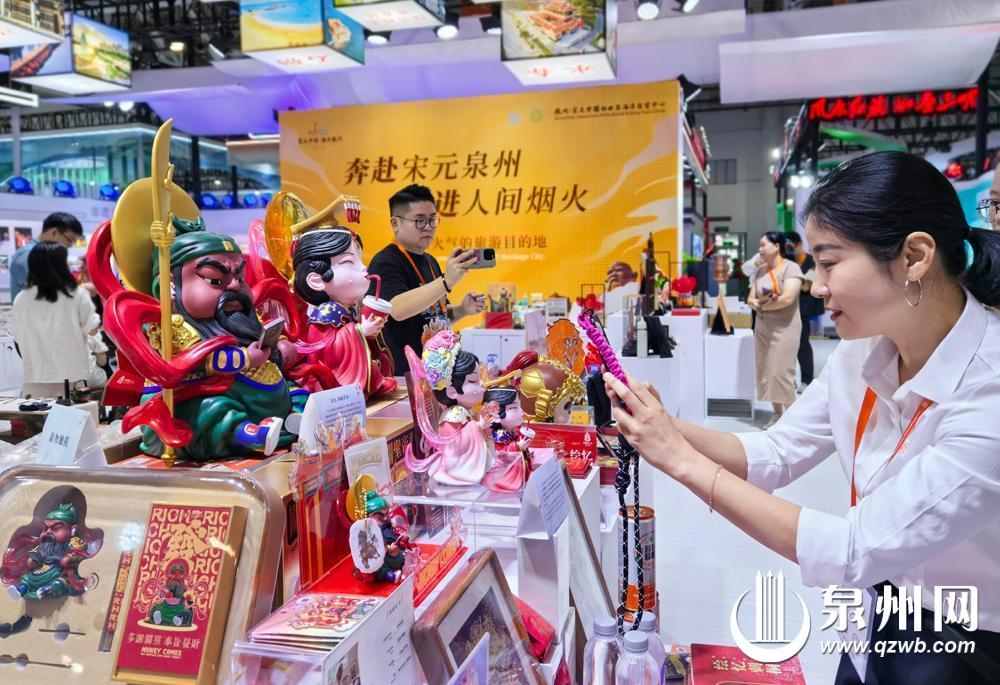 现场,泉州主题馆亮点纷呈,世遗泉州焕新呈现22个世遗景点,通过世遗景点3D打印、世遗泉州12时辰图片和海丝古城数字化复原VR骑游等形式解读世遗泉州;非遗泉州主打活化利用和生活化,品味泉州烟火日常,现场簪花成为一大亮点,吸引无数参观者体验,同时展示泉州花灯、惠女服饰、香道等;戏窝泉州重点推介全国首个戏剧盲盒演艺《因为刺桐》、大型功夫舞台剧《功夫传奇2》和融合情景剧《侨批往事》等,这些项目均为泉州市今年推出的重磅旅游演艺项目,全面展示泉州作为戏窝子的魅力,通过宣传短片和展板介绍亮点,同时还推介泉州提线木偶戏、梨园戏、高甲戏等优秀作品,全面展示泉州作为戏窝子的独特魅力;国潮泉州率先亮相泉州马年生肖IP——“六合同风·刺桐卫”,以郑成功、马可·波罗、施琅、郑和、关帝爷、俞大猷等泉州相关名人、名将为原型设计六匹马的艺术形象,备受瞩目,同时展示潮品鞋服、丝巾、包袋等。