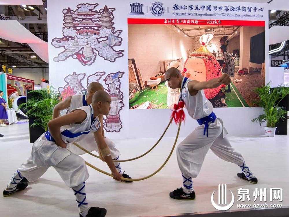 “今年泉州主题馆融合全市各地优势项目,着重呈现世遗泉州、戏窝泉州、国潮泉州和非遗泉州四大版块,主题更为突出,同时做足泉州好礼,营造沉浸式体验空间,让每一位参观者感受世遗泉州的整体风貌。”本届文博会泉州参展组委会相关负责人说,泉州主题馆不仅展品丰富,项目众多,还进一步增加了互动体验,通过动静结合全面展示泉州非遗的魅力。泉州提线木偶戏、南音、惠女服饰、武术表演等项目轮番上演,还有簪花、茶道、香道等非遗项目体验,赢得如潮好评。