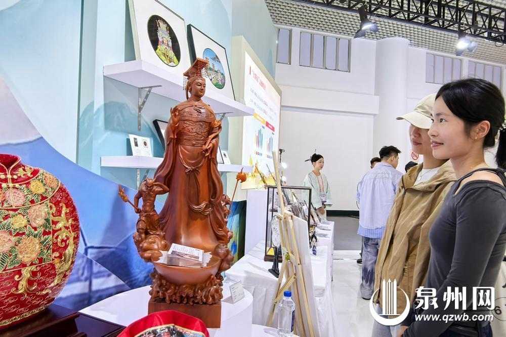 “文博会搭建海峡两岸文创交流平台,共同促进优秀传统文化传承发展,吸引了一大批两岸从业者到场展示最新成果,交流行业发展动态,促进相关产业发展。”国家级非遗代表性传承人、泉州木雕研究院院长张红萍已经10余次参加文博会,此次她的矿彩木雕《飞天》入选海峡两岸工艺精品展,同时还有木雕作品《巡海妈祖》亮相福建省主题馆,展示泉州木雕精湛技艺和发展最新成果。