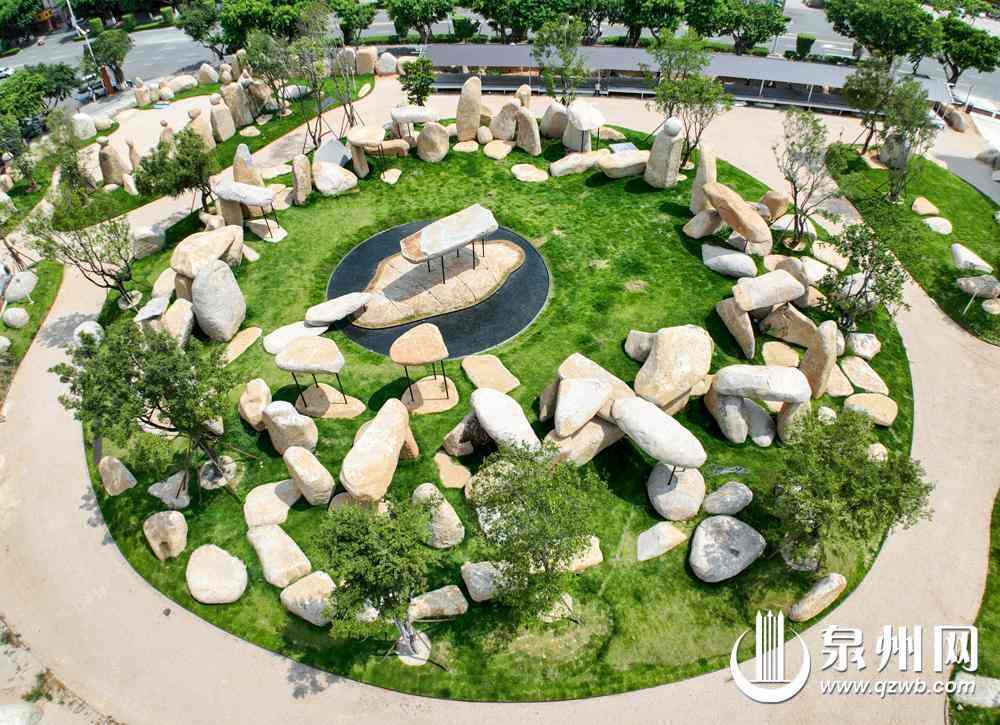 转至车水马龙的泉秀街与成洲路交叉口,另一处风格迥然的磐云石头艺术公园将约200块来自泉州深山的原生巨石“搬”进了都市中心。这些石头数量多、块头大,每块都保持着最原始的形态,或如春笋破土,或似拱门凌空,还有的结合钢管堆叠成各种形状,成就一幅极具冲击力的大地艺术画卷。它既是新晋的拍照打卡地,也为散步途中的城市视野注入鲜明的视觉冲击。