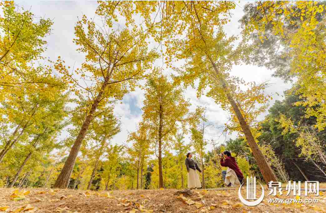 眼下,泉州森林公园的银杏小树林许多叶子已经转黄,在阳光照耀下呈现金黄的迷人色彩,带来浓浓的暖意。连日来,不时有市民、游客前往游玩,将笑容与这样诗意的景象收入镜头之中。如何找到这片银杏林?从泉州市区东海生态路中段山线绿道终点(八号公厕旁),沿游步道往森林公园四角亭方向步行几十米就能到达。据悉,银杏黄叶期较短,最佳观赏期可能只有一两周,喜欢的朋友可得抓紧了。