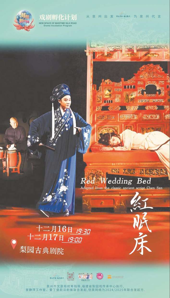 17日19:00—20:30,泉州梨园古典剧院 梨园戏《红眠床》;