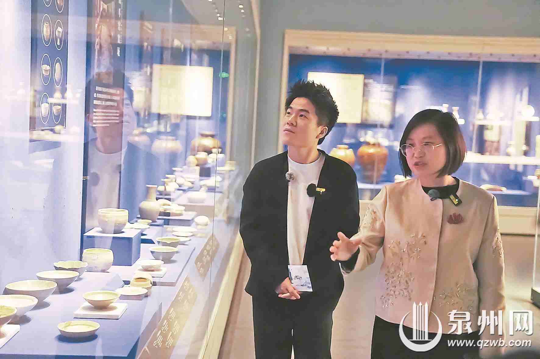 参观完“泉州:宋元时期的世界海洋商贸中心”展馆,董宇辉说:“洛阳桥、晋江,泉州人自中原而来,传承着中国人骨子里最核心的东西,又因地制宜发展出繁荣的商业文明。先祖做到的是开放、包容、世界化,是世界人民共同体。”他还将历史与当下联结,“宋元时期,那些精致、美观且几乎是定制的瓷器销往世界各地,如今晋江的鞋子、汽车、电池等同样走向全球,这是商业文明的发展路径”。