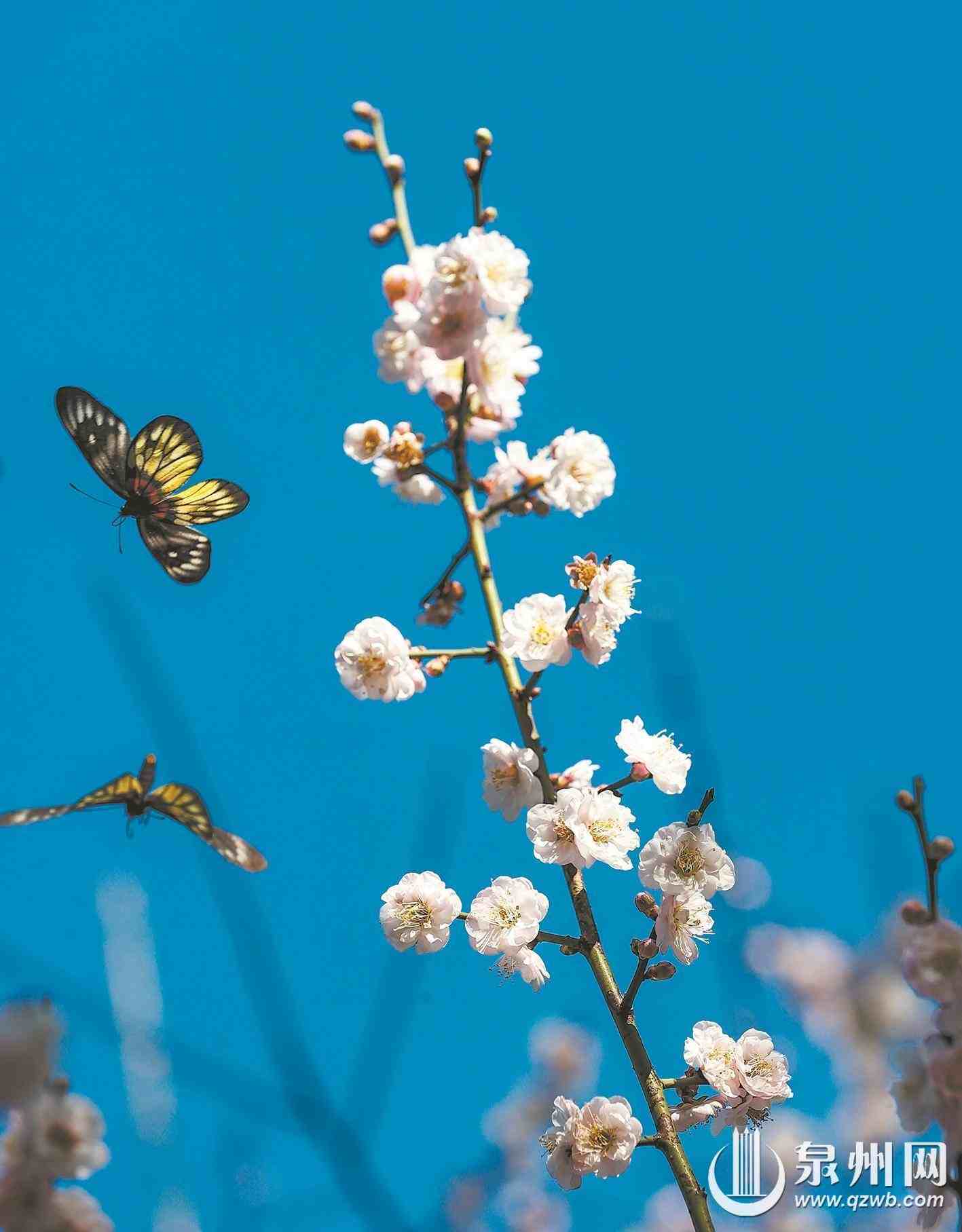 东湖公园白梅盛开,引来蜂飞蝶舞。(林劲峰 摄)