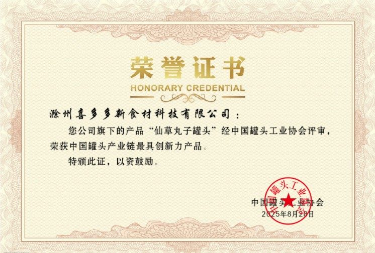 值得一提的是,在滁州喜多多检验中心斩获CNAS认证的同时,公司旗下产品与品牌也荣誉满载。品牌“喜多多”经中国罐头工业协会评审,荣获“中国罐头最受消费者欢迎罐头品牌”;旗下产品“仙草丸子罐头”经中国罐头工业协会评审,荣获“中国罐头产业链最具创新力产品”。这一系列荣誉形成了“技术筑基、产品创新、品牌领航”的三维竞争力格局,进一步巩固了喜多多在食品行业的领先地位。