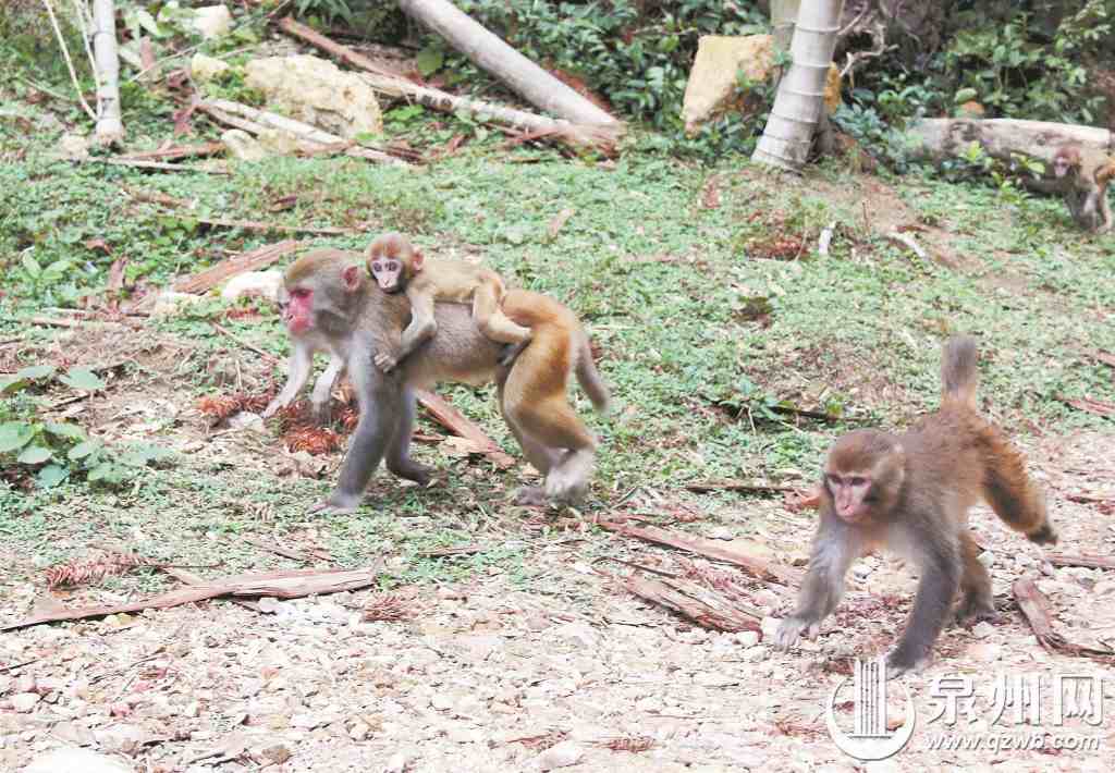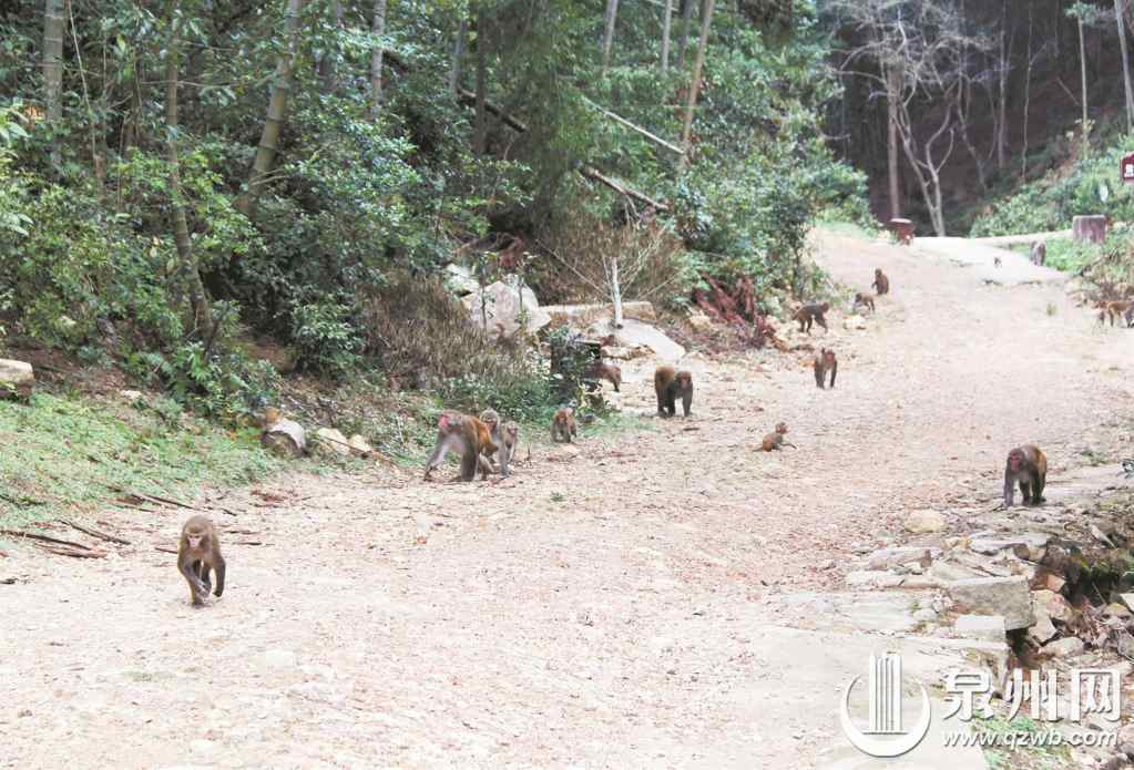 据曾华东介绍,这群猴子是猕猴,最早出现在20世纪80年代,一开始只有十几只。由于唐寨山森林公园山高林密,生态环境好,且猕猴是国家二级重点保护野生动物,大家保护意识高,又有部分游客会投喂食物,这里成了猴子理想的栖息地。此前,德化县林业部门曾抓走两批,放生到其他地方,经过繁衍,如今西天寺附近还栖息着一百多只猴子。