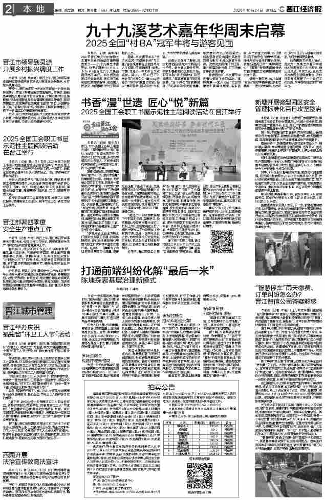 2025年晋江市文化创意和艺术嘉年华系列活动的重要组成部分——九十九溪艺术嘉年华,将于本周末(10月25日至26日)在晋江九十九溪田园风光区举行。本次活动由晋江市委宣传部、晋江市文化体育和旅游局指导,池店镇人民政府、池店镇新时代文明实践所主办。